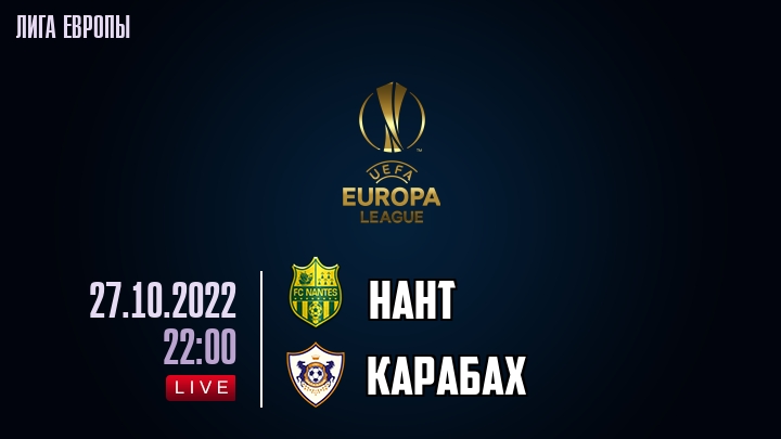 27 октября 2022 года, состоялась онлайн трансляция футбольного матча между футбольным клубом Нант и футбольным клубом Карабах, проходящего в рамках Лиги Европы.