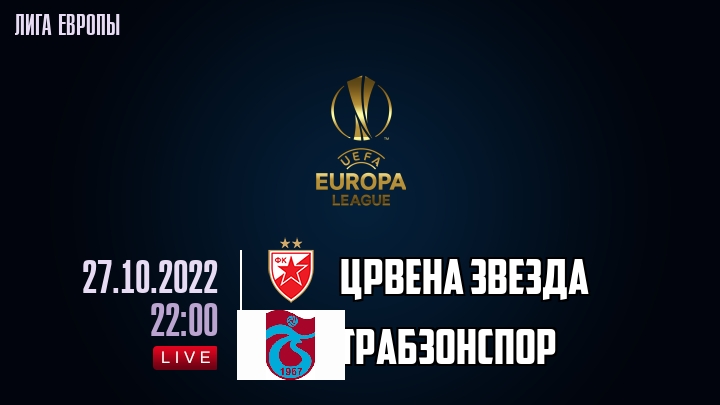 27 октября 2022 года, состоялась онлайн трансляция футбольного матча между футбольным клубом Црвена Звезда и футбольным клубом Трабзонспор, проходящего в рамках Лиги Европы.