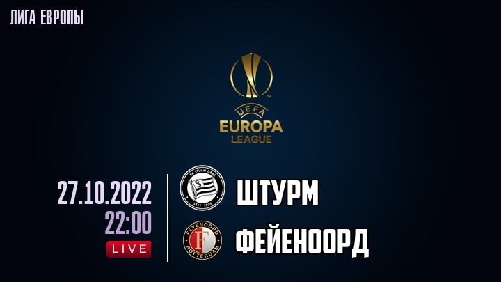 27 октября 2022 года, состоялась онлайн трансляция футбольного матча между футбольным клубом Штурм и футбольным клубом Фейеноорд, проходящего в рамках Лиги Европы.