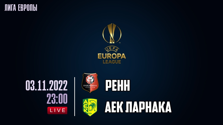 3 ноября 2022 года, состоялась онлайн трансляция футбольного матча между футбольным клубом Ренн и футбольным клубом АЕК Ларнака, проходящего в рамках Лиги Европы.