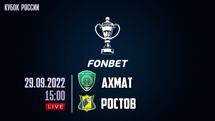 29 сентября 2022 года, состоялась онлайн трансляция футбольного матча между футбольным клубом Ахмат и футбольным клубом Ростов, проходящего в рамках Кубка России.