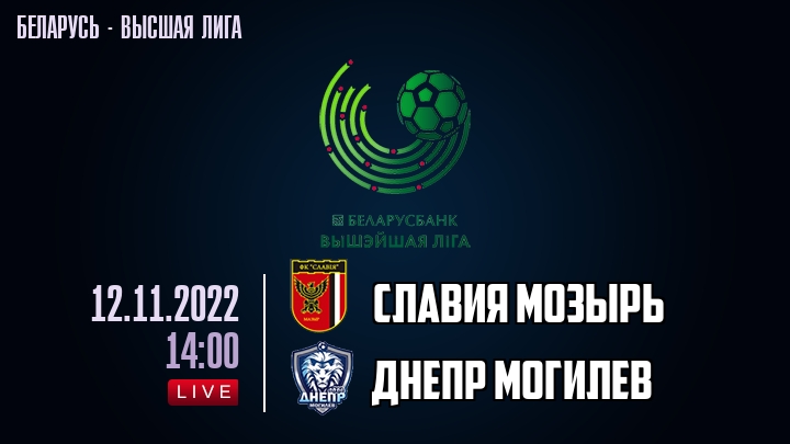 12 ноября 2022 года, состоялась онлайн трансляция футбольного матча между футбольным клубом Славия Мозырь и футбольным клубом Днепр Могилев, проходящего в рамках Высшей лиги Беларуси.