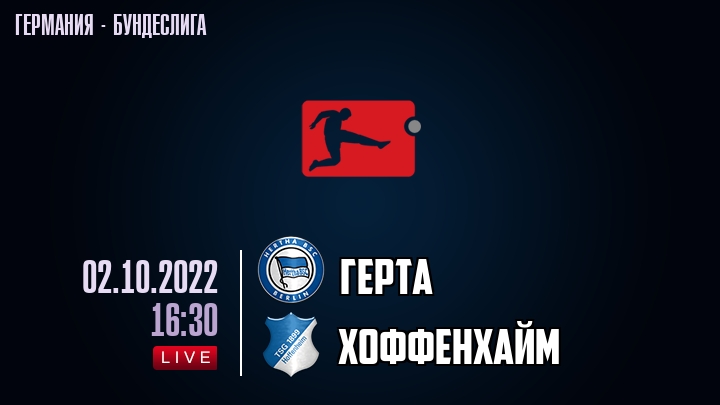 2 октября 2022 года, состоялась онлайн трансляция футбольного матча между футбольным клубом Герта и футбольным клубом Хоффенхайм, проходящего в рамках Бундеслиги Германии.