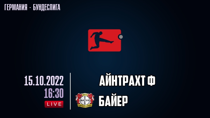 15 октября 2022 года, состоялась онлайн трансляция футбольного матча между футбольным клубом Айнтрахт Ф и футбольным клубом Байер, проходящего в рамках Бундеслиги Германии.
