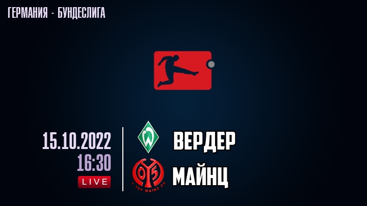 15 октября 2022 года, состоялась онлайн трансляция футбольного матча между футбольным клубом Вердер и футбольным клубом Майнц, проходящего в рамках Бундеслиги Германии.