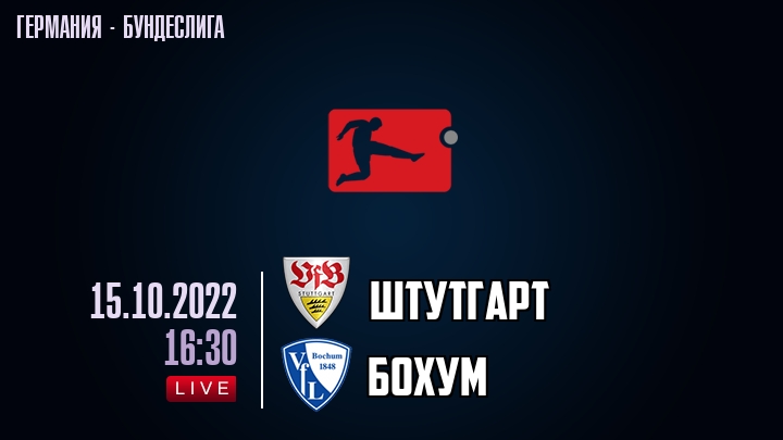 15 октября 2022 года, состоялась онлайн трансляция футбольного матча между футбольным клубом Штутгарт и футбольным клубом Бохум, проходящего в рамках Бундеслиги Германии.