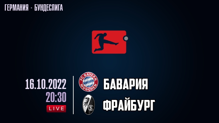 16 октября 2022 года, состоялась онлайн трансляция футбольного матча между футбольным клубом Бавария и футбольным клубом Фрайбург, проходящего в рамках Бундеслиги Германии.