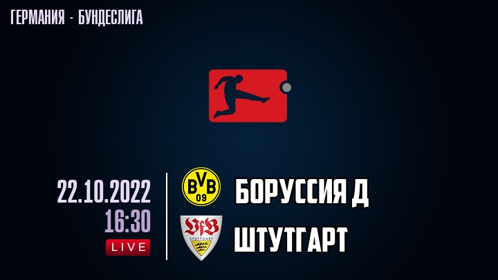 22 октября 2022 года, состоялась онлайн трансляция футбольного матча между футбольным клубом Боруссия Д и футбольным клубом Штутгарт, проходящего в рамках Бундеслиги Германии.