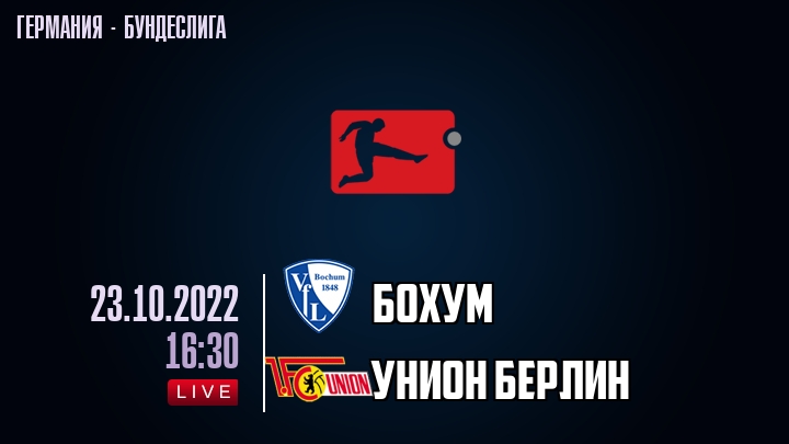 23 октября 2022 года, состоялась онлайн трансляция футбольного матча между футбольным клубом Бохум и футбольным клубом Унион Берлин, проходящего в рамках Бундеслиги Германии.