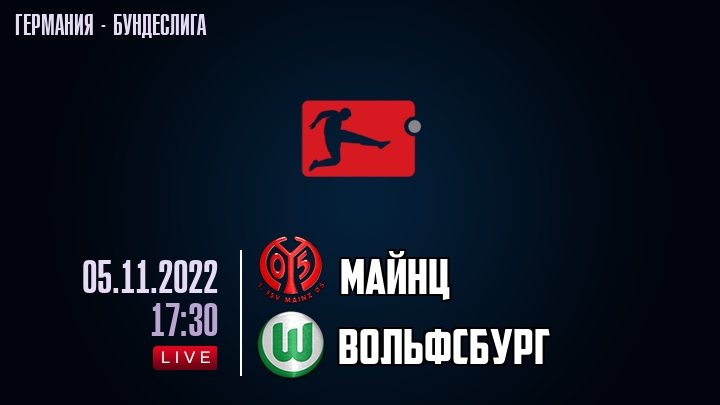 5 ноября 2022 года, состоялась онлайн трансляция футбольного матча между футбольным клубом Майнц и футбольным клубом Вольфсбург, проходящего в рамках Бундеслиги Германии.