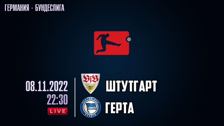 8 ноября 2022 года, состоялась онлайн трансляция футбольного матча между футбольным клубом Штутгарт и футбольным клубом Герта, проходящего в рамках Бундеслиги Германии.