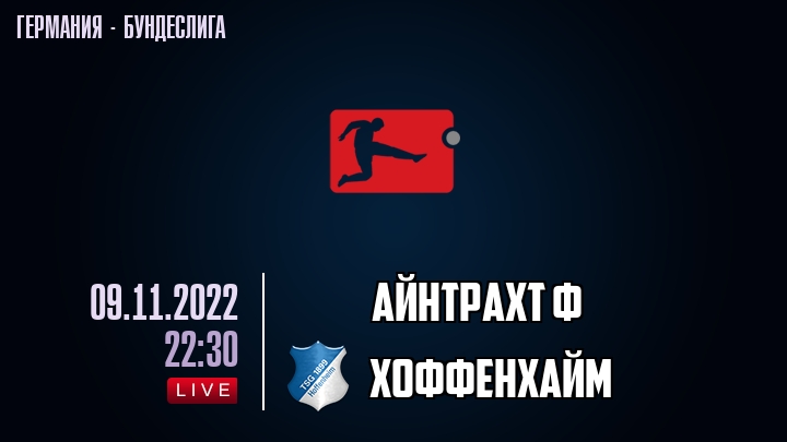 9 ноября 2022 года, состоялась онлайн трансляция футбольного матча между футбольным клубом Айнтрахт Ф и футбольным клубом Хоффенхайм, проходящего в рамках Бундеслиги Германии.