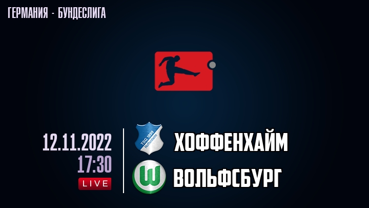 12 ноября 2022 года, состоялась онлайн трансляция футбольного матча между футбольным клубом Хоффенхайм и футбольным клубом Вольфсбург, проходящего в рамках Бундеслиги Германии.