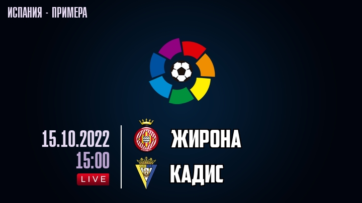 15 октября 2022 года, состоялась онлайн трансляция футбольного матча между футбольным клубом Жирона и футбольным клубом Кадис, проходящего в рамках чемпионата Испании.