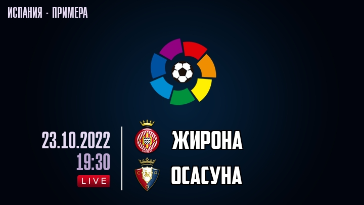 23 октября 2022 года, состоялась онлайн трансляция футбольного матча между футбольным клубом Жирона и футбольным клубом Осасуна, проходящего в рамках чемпионата Испании.