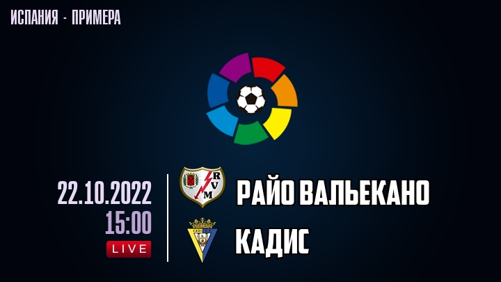 22 октября 2022 года, состоялась онлайн трансляция футбольного матча между футбольным клубом Райо Вальекано и футбольным клубом Кадис, проходящего в рамках чемпионата Испании.