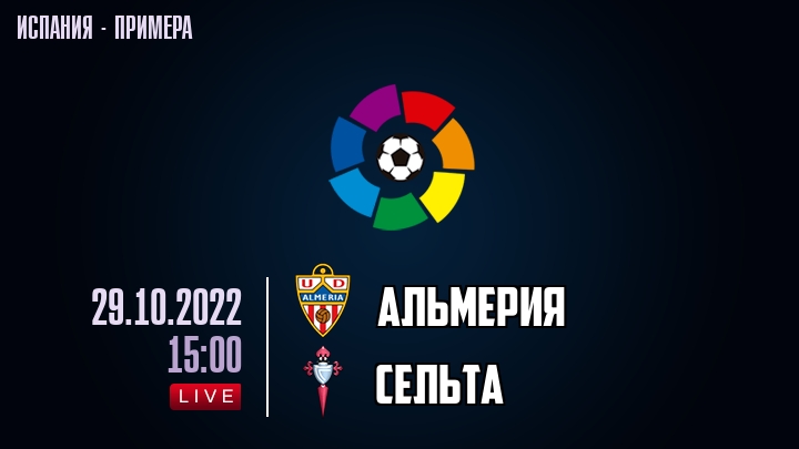 29 октября 2022 года, состоялась онлайн трансляция футбольного матча между футбольным клубом Альмерия и футбольным клубом Сельта, проходящего в рамках чемпионата Испании.