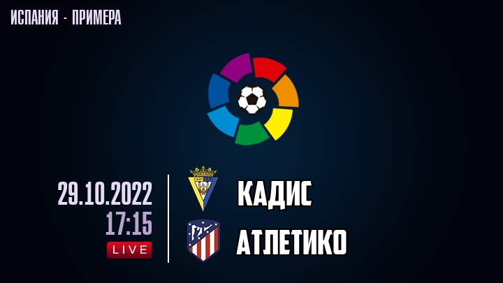 29 октября 2022 года, состоялась онлайн трансляция футбольного матча между футбольным клубом Кадис и футбольным клубом Атлетико, проходящего в рамках чемпионата Испании.