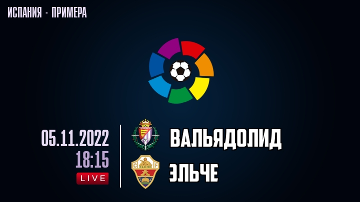 5 ноября 2022 года, состоялась онлайн трансляция футбольного матча между футбольным клубом Вальядолид и футбольным клубом Эльче, проходящего в рамках чемпионата Испании.
