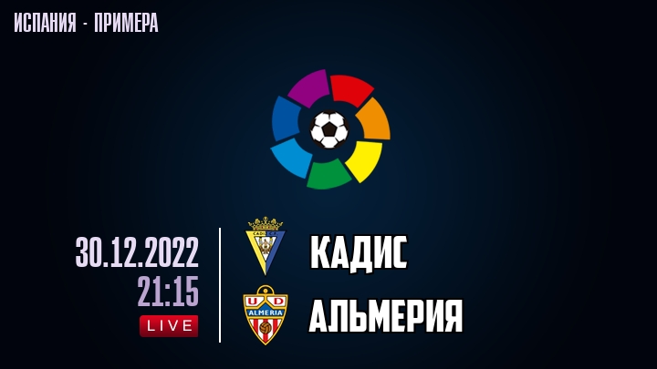 30 декабря 2022 года, состоялась онлайн трансляция футбольного матча между футбольным клубом Кадис и футбольным клубом Альмерия, проходящего в рамках чемпионата Испании.
