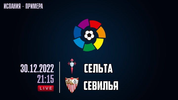 30 декабря 2022 года, состоялась онлайн трансляция футбольного матча между футбольным клубом Сельта и футбольным клубом Севилья, проходящего в рамках чемпионата Испании.