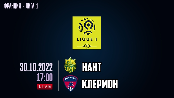 30 октября 2022 года, состоялась онлайн трансляция футбольного матча между футбольным клубом Нант и футбольным клубом Клермон, проходящего в рамках Лиги 1 чемпионата Франция.