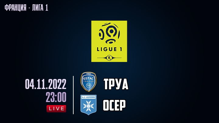 4 ноября 2022 года, состоялась онлайн трансляция футбольного матча между футбольным клубом Труа и футбольным клубом Осер, проходящего в рамках Лиги 1 чемпионата Франция.