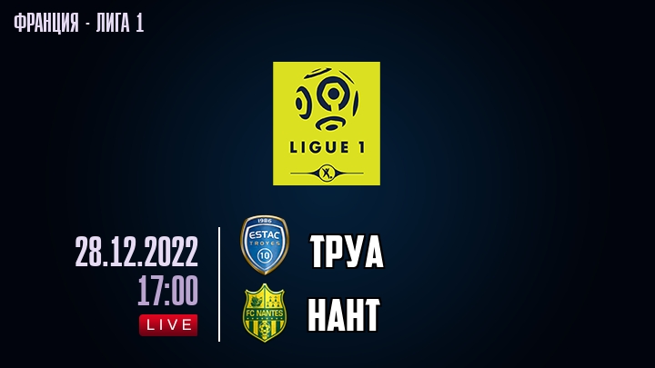28 декабря 2022 года, состоялась онлайн трансляция футбольного матча между футбольным клубом Труа и футбольным клубом Нант, проходящего в рамках Лиги 1 чемпионата Франция.