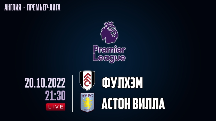 20 октября 2022 года, состоялась онлайн трансляция футбольного матча между футбольным клубом Фулхэм и футбольным клубом Астон Вилла, проходящего в рамках Премьер лиги Англии.