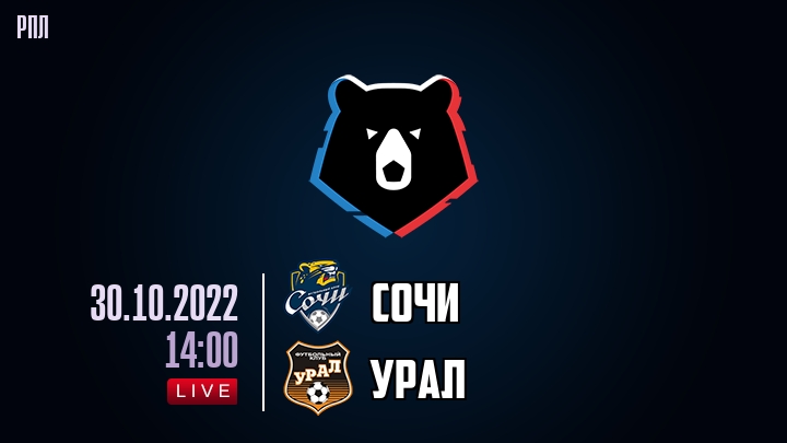 30 октября 2022 года, состоялась онлайн трансляция футбольного матча между футбольным клубом Сочи и футбольным клубом Урал, проходящего в рамках чемпионата РПЛ.