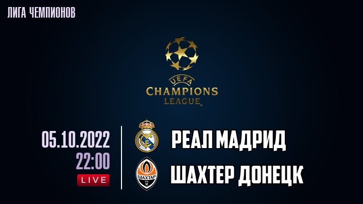 5 октября 2022 года, состоялась онлайн трансляция футбольного матча между футбольным клубом Реал Мадрид и футбольным клубом Шахтер Донецк, проходящего в рамках Лиги Чемпионов.