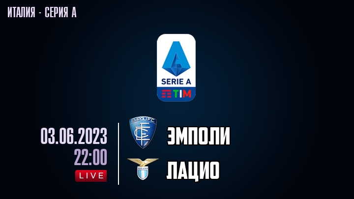 3 июня 2023 года, состоялась онлайн трансляция футбольного матча между футбольным клубом Эмполи и футбольным клубом Лацио, проходящего в рамках Серии А чемпионата Италии.