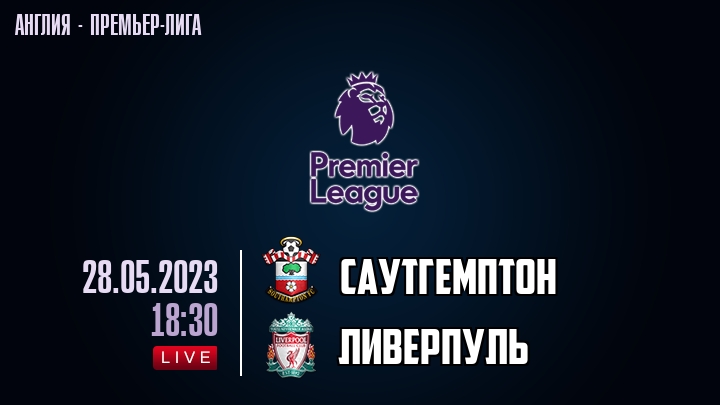 28 мая 2023 года, состоялась онлайн трансляция футбольного матча между футбольным клубом Саутгемптон и футбольным клубом Ливерпуль, проходящего в рамках Премьер лиги Англии.