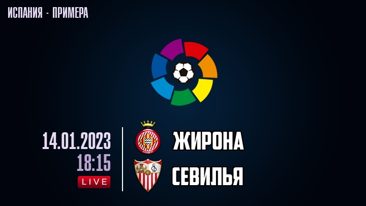 14 января 2023 года, состоялась онлайн трансляция футбольного матча между футбольным клубом Жирона и футбольным клубом Севилья, проходящего в рамках чемпионата Испании.