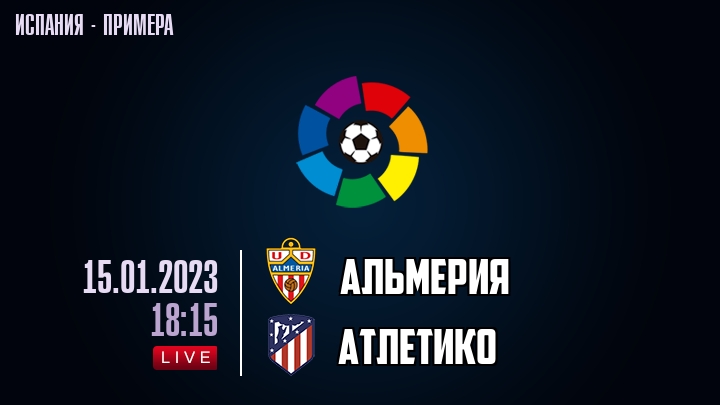 15 января 2023 года, состоялась онлайн трансляция футбольного матча между футбольным клубом Альмерия и футбольным клубом Атлетико, проходящего в рамках чемпионата Испании.