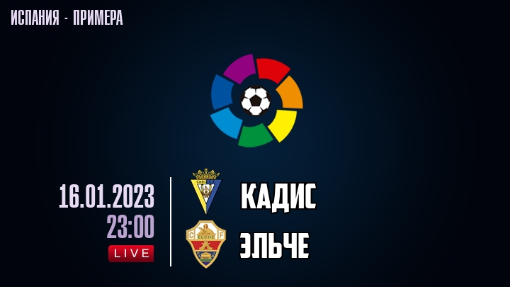16 января 2023 года, состоялась онлайн трансляция футбольного матча между футбольным клубом Кадис и футбольным клубом Эльче, проходящего в рамках чемпионата Испании.