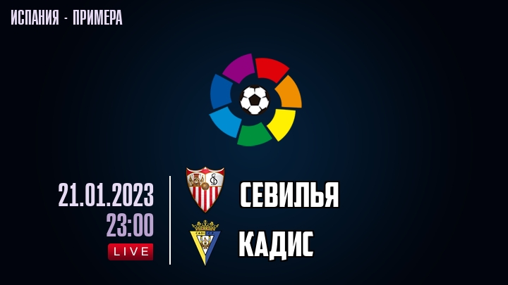 21 января 2023 года, состоялась онлайн трансляция футбольного матча между футбольным клубом Севилья и футбольным клубом Кадис, проходящего в рамках чемпионата Испании.