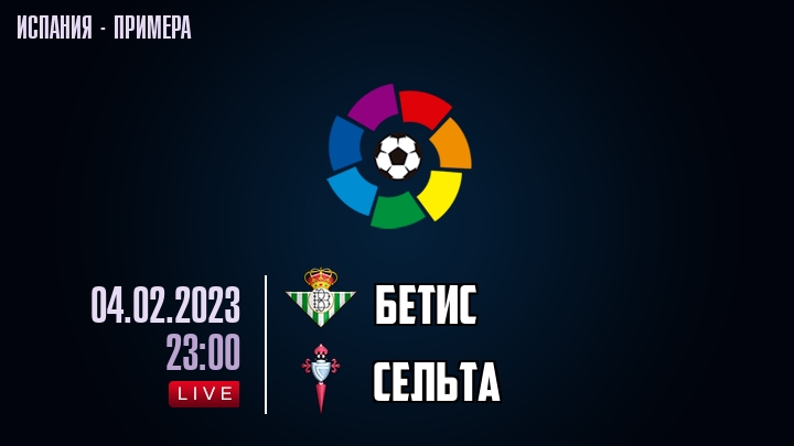 4 февраля 2023 года, состоялась онлайн трансляция футбольного матча между футбольным клубом Бетис и футбольным клубом Сельта, проходящего в рамках чемпионата Испании.