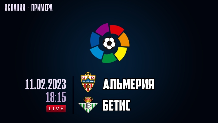 11 февраля 2023 года, состоялась онлайн трансляция футбольного матча между футбольным клубом Альмерия и футбольным клубом Бетис, проходящего в рамках чемпионата Испании.