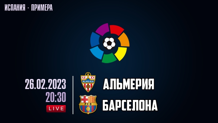 26 февраля 2023 года, состоялась онлайн трансляция футбольного матча между футбольным клубом Альмерия и футбольным клубом Барселона, проходящего в рамках чемпионата Испании.