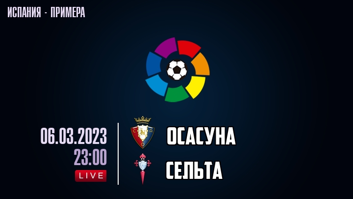 6 марта 2023 года, состоялась онлайн трансляция футбольного матча между футбольным клубом Осасуна и футбольным клубом Сельта, проходящего в рамках чемпионата Испании.