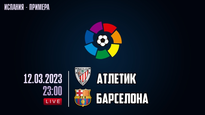 12 марта 2023 года, состоялась онлайн трансляция футбольного матча между футбольным клубом Атлетик и футбольным клубом Барселона, проходящего в рамках чемпионата Испании.
