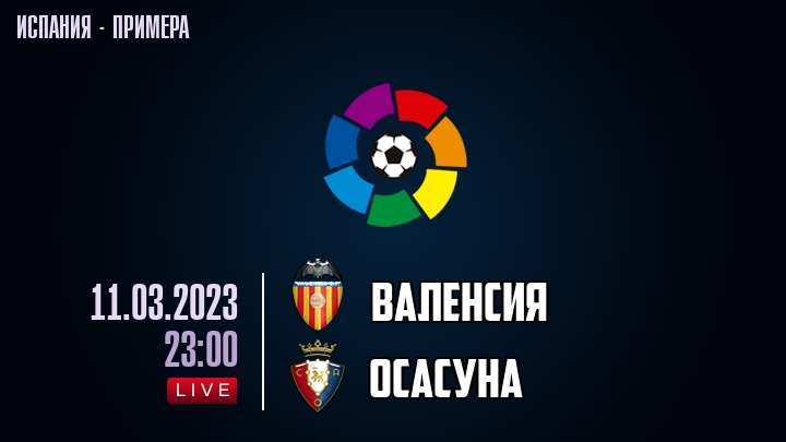 11 марта 2023 года, состоялась онлайн трансляция футбольного матча между футбольным клубом Валенсия и футбольным клубом Осасуна, проходящего в рамках чемпионата Испании.
