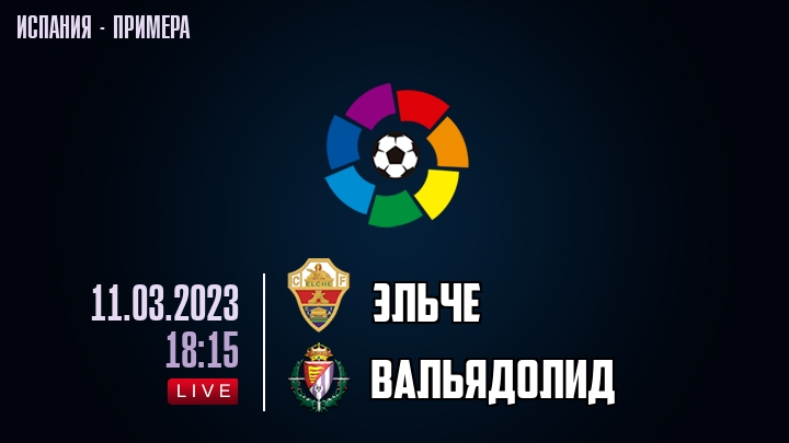 11 марта 2023 года, состоялась онлайн трансляция футбольного матча между футбольным клубом Эльче и футбольным клубом Вальядолид, проходящего в рамках чемпионата Испании.