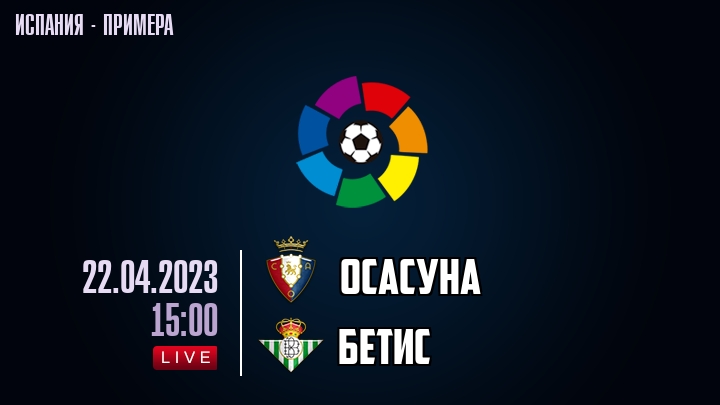 22 апреля 2023 года, состоялась онлайн трансляция футбольного матча между футбольным клубом Осасуна и футбольным клубом Бетис, проходящего в рамках чемпионата Испании.