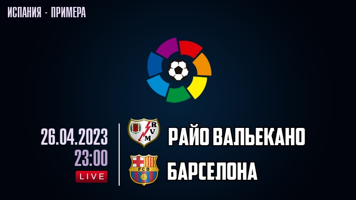 26 апреля 2023 года, состоялась онлайн трансляция футбольного матча между футбольным клубом Райо Вальекано и футбольным клубом Барселона, проходящего в рамках чемпионата Испании.