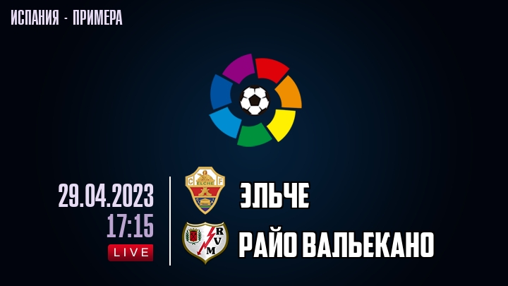29 апреля 2023 года, состоялась онлайн трансляция футбольного матча между футбольным клубом Эльче и футбольным клубом Райо Вальекано, проходящего в рамках чемпионата Испании.