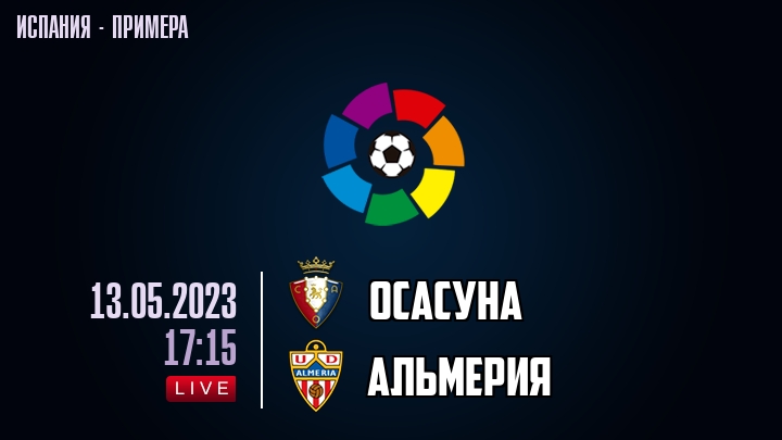 13 мая 2023 года, состоялась онлайн трансляция футбольного матча между футбольным клубом Осасуна и футбольным клубом Альмерия, проходящего в рамках чемпионата Испании.