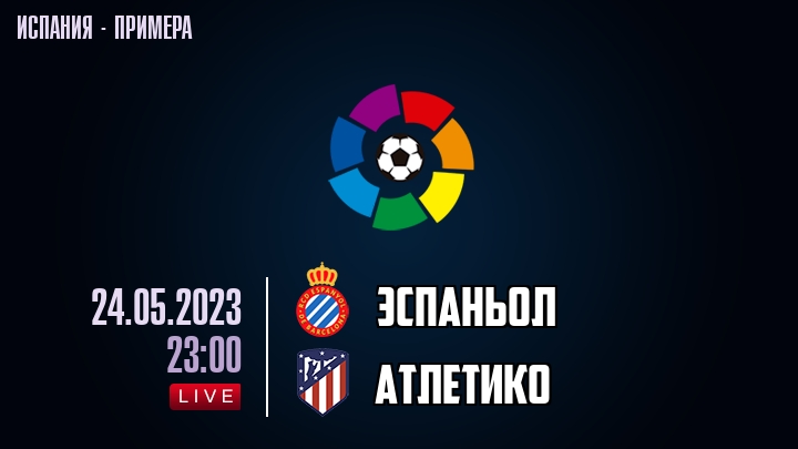 24 мая 2023 года, состоялась онлайн трансляция футбольного матча между футбольным клубом Эспаньол и футбольным клубом Атлетико, проходящего в рамках чемпионата Испании.