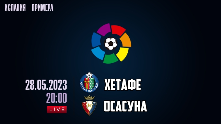 28 мая 2023 года, состоялась онлайн трансляция футбольного матча между футбольным клубом Хетафе и футбольным клубом Осасуна, проходящего в рамках чемпионата Испании.